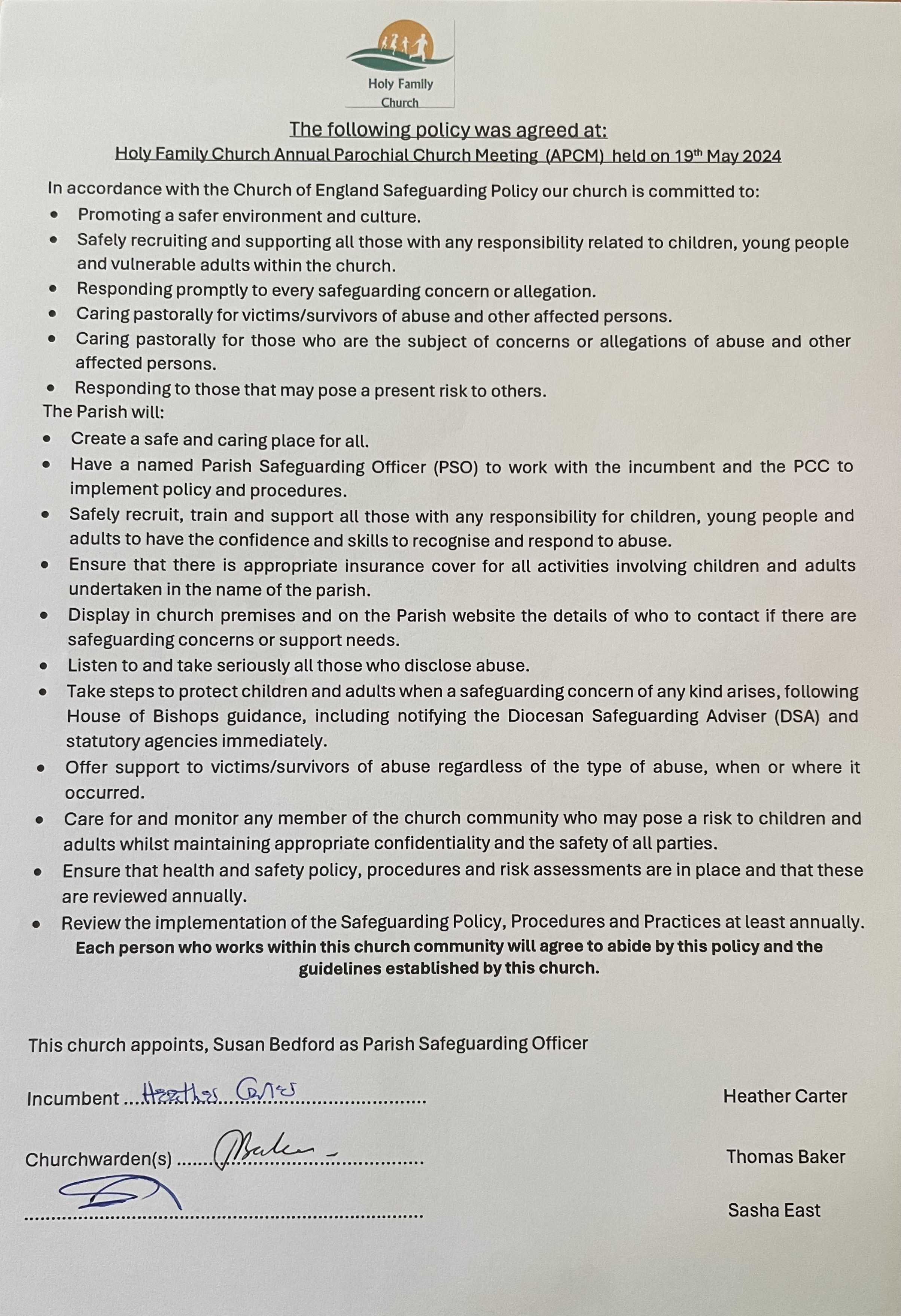 We are fully committed to safeguarding vulnerable members of society and led by the Church of England policies on safeguarding: